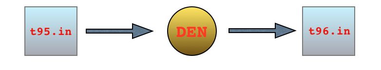 In this case, test t95.in produces a density file DEN that is needed to start the second calculation in test t96.in. The python code must be aware of this dependency so that t95.in and t96.in can be executed in the correct order.