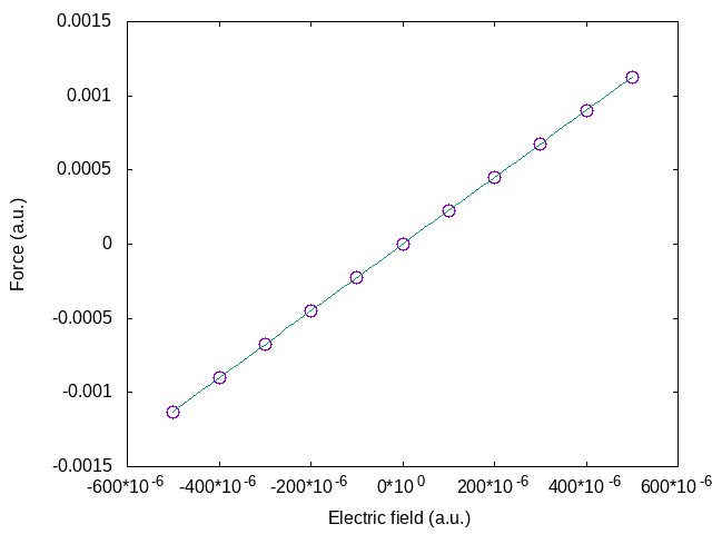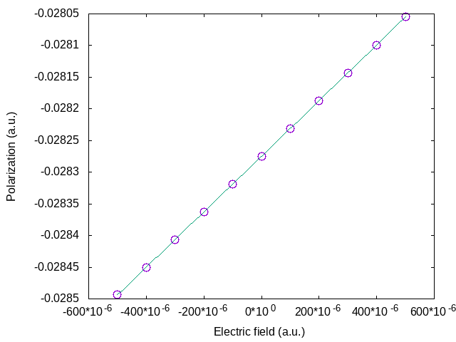 As these calculations are quite long, the input file has been limited to a small number of small fields. Three cases have been selected: E = 0, E = +0.0001 and E = -0.0001. If you have time later, you can perform more exhaustive calculations over a larger set of fields.